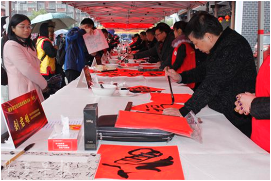 开幕仪式后,湘乡市进行了虞唐高跷的巡游展、文艺演出和22位湘乡市书画名家参加送福活动,持续四个多小时,为两千多个家庭送去福字,充分体现文化惠民情怀。