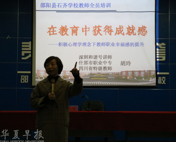 华夏早报讯(记者 张玉梅 通讯员 王可)为全面提升教师职业素养,3月30日,湖南省邵阳县石齐学校请来了四川省特级教师、全国心理援助联盟专家库成员、深圳市和谐号教育特聘讲师胡玲老师对全校教师进行怎样“在教育中获得成就感——积极心理学理念下教师职业幸福感的提升”的心理教育讲座,300余人参加了此次讲座会议。