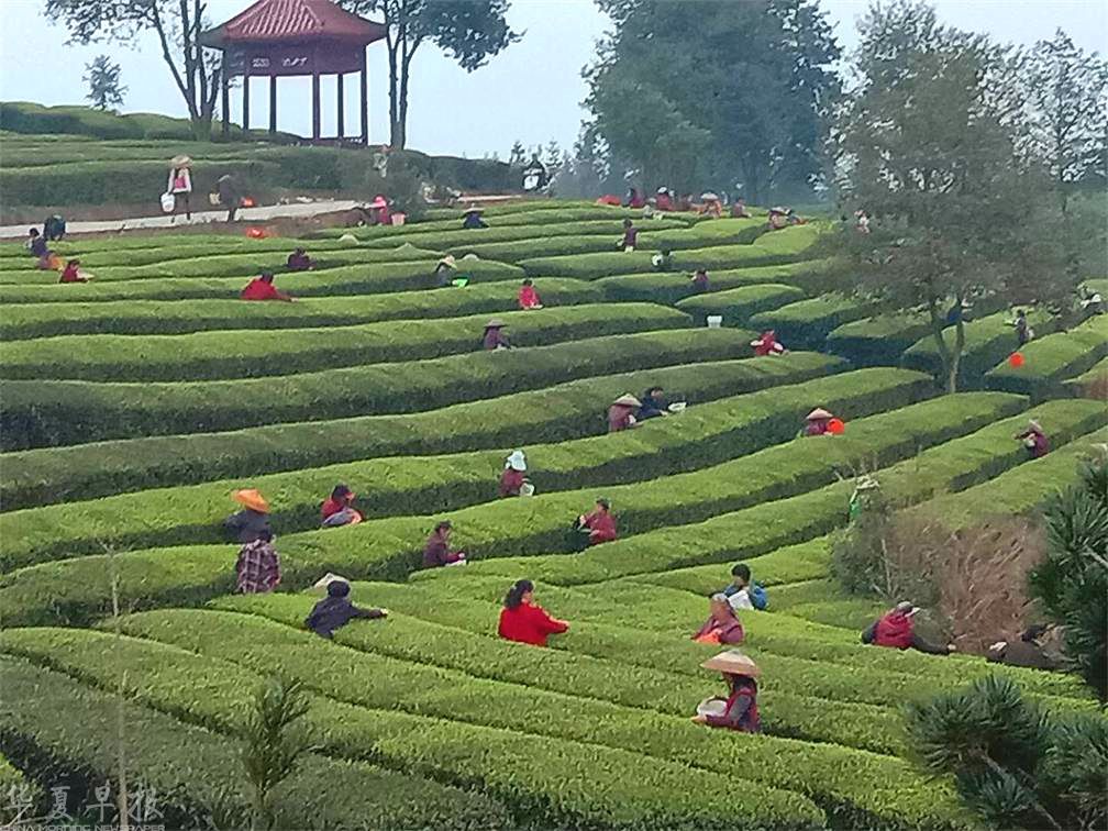 华夏早报讯(通讯员 邓淑月) 一年之际在于春,采茶时节在清明。近日,湖南省武冈市邓元泰镇天心桥村的旱岭香茗茶叶有限公司的茶场迎来了一年一度最忙碌的季节,采茶的工人、赏茶的游人络绎不绝,最为珍贵的明前茶陆续上市。