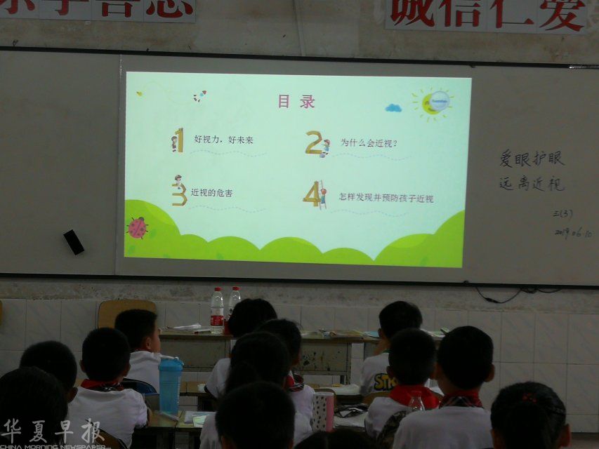 在主题班会上,各班班主任结合生动有趣的生活故事,深入浅出地阐述了近视给学习、生活带来的极大不便,要求孩子们注意用眼卫生、加强体育锻炼。班会中,梅湾小学各班主任还对眼保健操的操作动作要领进行了讲解,强调了学校每天两次眼保健操对保护视力有着重要的作用,同时要求孩子们要认真做眼保健操,缓解学习过程中的视力疲劳。