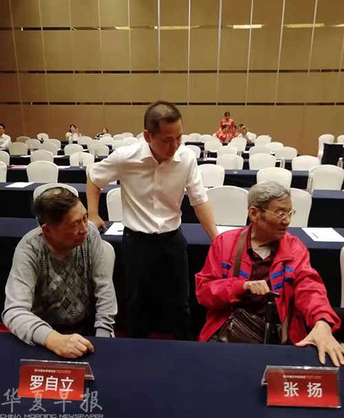 图为中国邮政集团公司邵阳市分公司总经理汤文美(中)和著名作家张扬、著名书法家罗自立在活动现场。 傅秀伟 摄