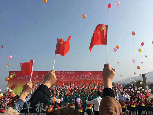 华夏早报讯(记者 卜运华 通讯员 蒋艳明) 3月11日,湖南省双牌县庆“三八”魅力巾帼 歌唱祖国”千人““和”声快闪活动,在县滨江广场隆重举行,此次活动由中共双牌县委、县政府主办,县妇联、文广新局承办。