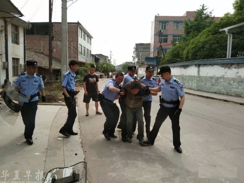 华夏早报四川雅安讯(记者 邓雅江)4月27日,四川省雅安市名山区百丈派出所接到报警电话,称有名精神病人拿着长刀在街上乱砍。百丈派出所民警立即携带盾牌、防爆叉等警械装备迅速出动火速前往报警地点。
