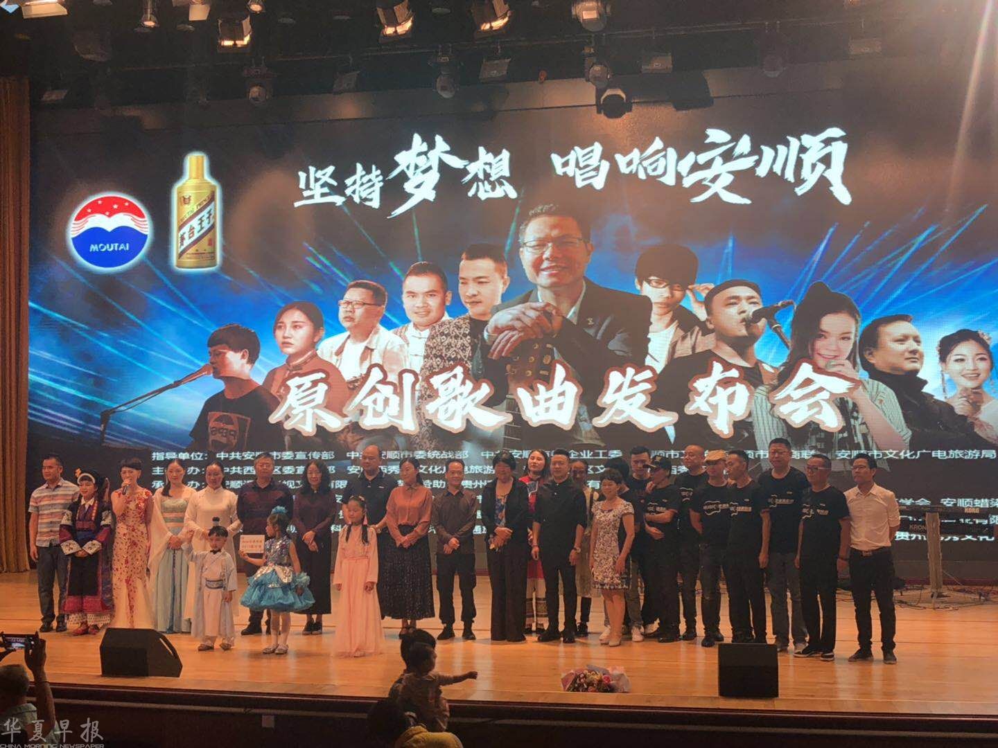华夏早报讯(记者 金松)6月16日,由贵州省安顺市西秀区区委宣传部等单位联合主办“坚持梦想,唱响安顺”原创歌曲发布会在该区文化中心举行,800人共同见证了这场向伟大祖国“建国70周年”献礼的音乐盛会。