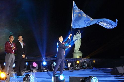 塘厦三正半山温泉酒店总经理盛小超接过承办会旗。