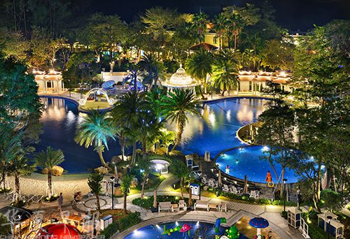 塘厦三正半山温泉酒店温泉区夜景。