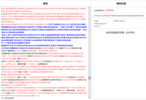 第二章的2.4节至2.5.3节内容,与2007年吴丽的硕士论文《两段提升管催化裂化反应历程的数值模拟研究》重复字数高达7211字。