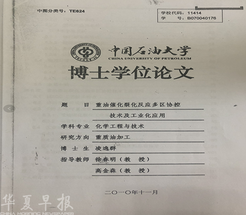 核心提示:近日,有知情人向华夏早报-灯塔新闻提供了一份举报中国石油炼油与化工分公司总工程师邢颖春、中国石油化工集团(简称中石化集团)副总经理凌逸群博士论文严重抄袭的材料,包括博士论文原文、被抄袭论文以及查重(重复率)报告。