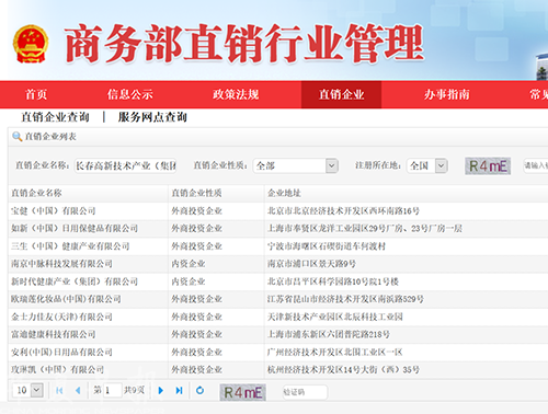 记者了解到,国内对直销企业早就有着严格的审核和公示查询机制,由商务部市场秩序司、外资司主管的商务部直销行业管理官网为国内直销企业唯一查询网站。