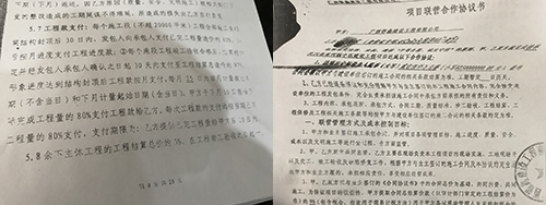 左图为施工方与星河公司合同中约定的工程款支付方式,右图为经龙生与广西银鑫公司签订的项目联营合作协议。