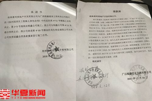 期间,二者尚未彻底翻脸。2018年1月23日,星河公司以《承诺书》的形式承诺:第1-3号楼继续由银鑫公司施工,第4-11号楼施工合同终止,第4-10号楼继续由经龙生指定建筑公司与星河公司按原银鑫合同条款重新签订施工合同。2018年1月31日,星河公司与银鑫公司签订了《施工合同补充协议书》,对以上承诺内容进行了确认。后经龙生指定桂林三建股份有限公司与星河公司签订了第4-10号楼的《星河园项目工程施工承包合同》、《星河园项目工程施工承包合同补充协议》,并继续施工至今。“但是星河公司以没有资金支付等各种托辞,一直没有再支付工程款。”经龙生说。