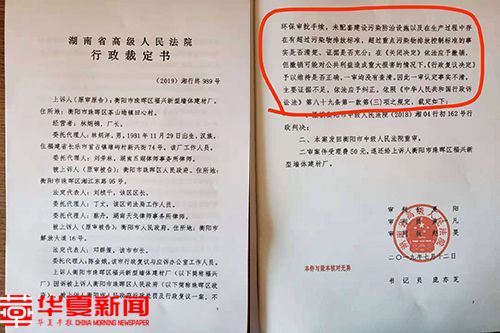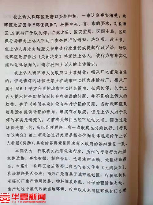 衡阳市人民政府在湖南省高级人民法院的行政裁定书中口头辩称,称珠晖区人民政府此前作出关闭福兴厂的行政决定程序存在瑕疵。