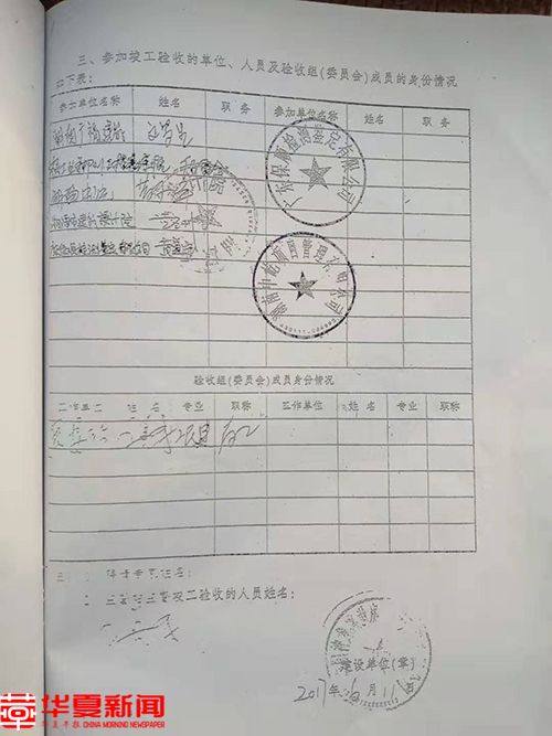 那么,出了这么大的事,当初芙蓉花园小区房屋消防安全验收报告是如何出具的呢?据业主陈某介绍,工程验收本应由建设单位组织勘察、设计、施工、监理等单位和其他有关方面的专家进行验收,但该项目验收根本没有组织相关单位全部参与。县质监局于2016年6月11日出具的《芙蓉花园住宅小区工程竣工验收报告》里,上述验收报告中的五个单位中,建设方县民政局合伙建设领导小组成员没有参与,没有加盖领导小组办事公章;勘察单位郴州市工程勘察院没有派人参与,没有加盖单位公章;施工单位湖南广福建筑有限公司没有派人参与,没有加盖单位公章。
