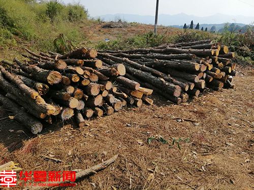 被砍伐的林木堆在一起准备运走。