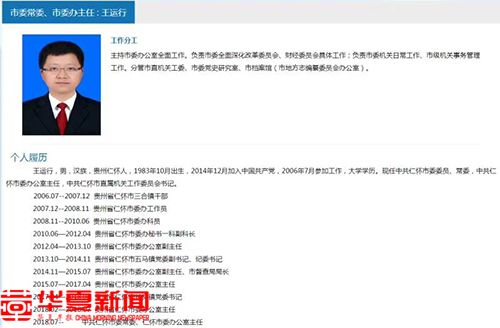 仁怀市人民政府官网公布的王运行履历信息。