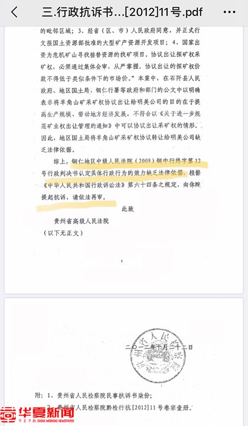 2012年10月,贵州省人民检察院向贵州省高院提起抗诉,请求再审。