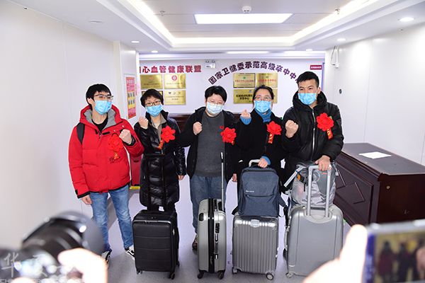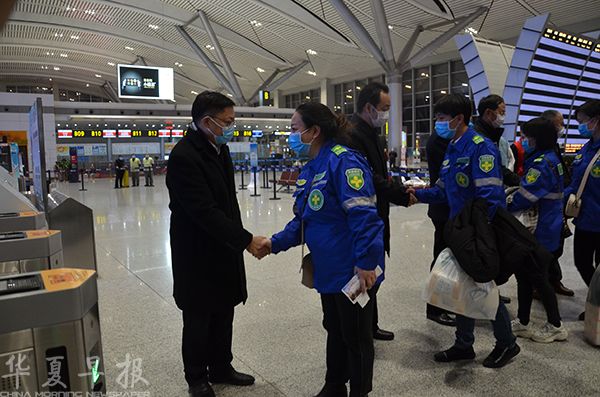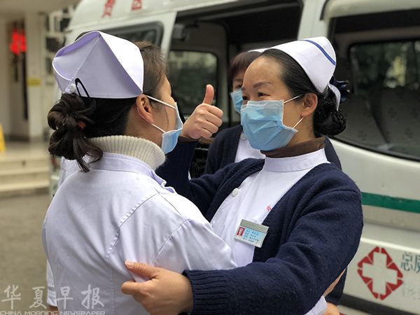 图为医务人员出征鼓励。