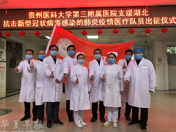华夏早报贵州贵阳讯(记者 金松)近日,贵州省第一批援助湖北医疗队出征。该医疗队由省卫生健康委从省内各地抽调的135名医务人员组成,由委2名领队率领赴湖北省鄂州市开展疫情防控和患者救治工作。