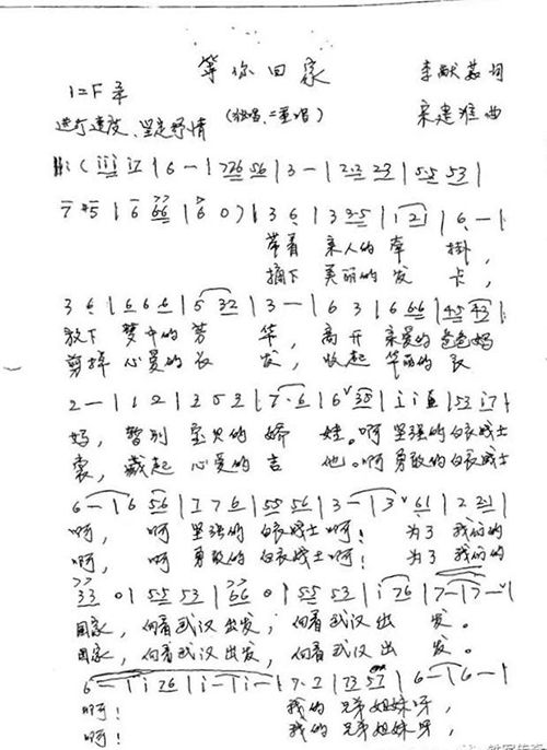李献茹说,她突然有了要为这些姑娘们写一首歌的想法,就和沁园春艺术团艺术总监宋建淮老师商议,她写词,他来作曲,宋老师欣然同意。在一天之内,他们便完成了“等你回家”这首歌。“我和宋老师隔着家属院隔离护栏交接歌谱的时候,宋老师眼含热泪,戴着口罩给我试唱。”