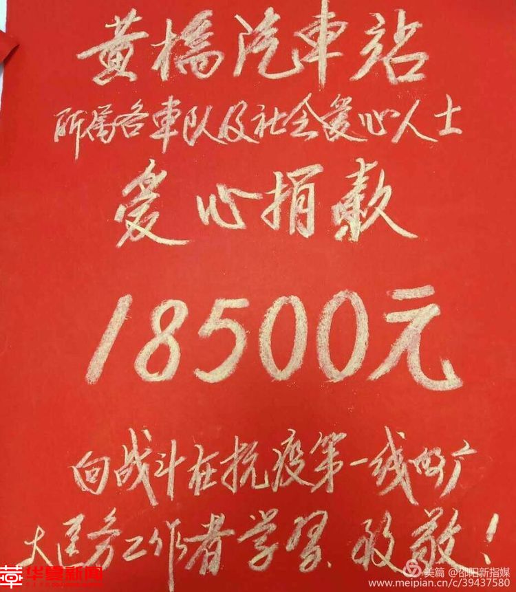 华夏新闻-华夏早报湖南邵阳讯(首席记者 张邦毛)3月底,湘运洞口分公司黄桥汽车站站长王小飞,心系疫情,不忘国家 ,带领辖属6个车队的司乘人员及社会各界爱心人士,奉献爱心,踊跃捐款。共捐款18500元,并于当日全部交给洞口县黄桥镇人民政府。