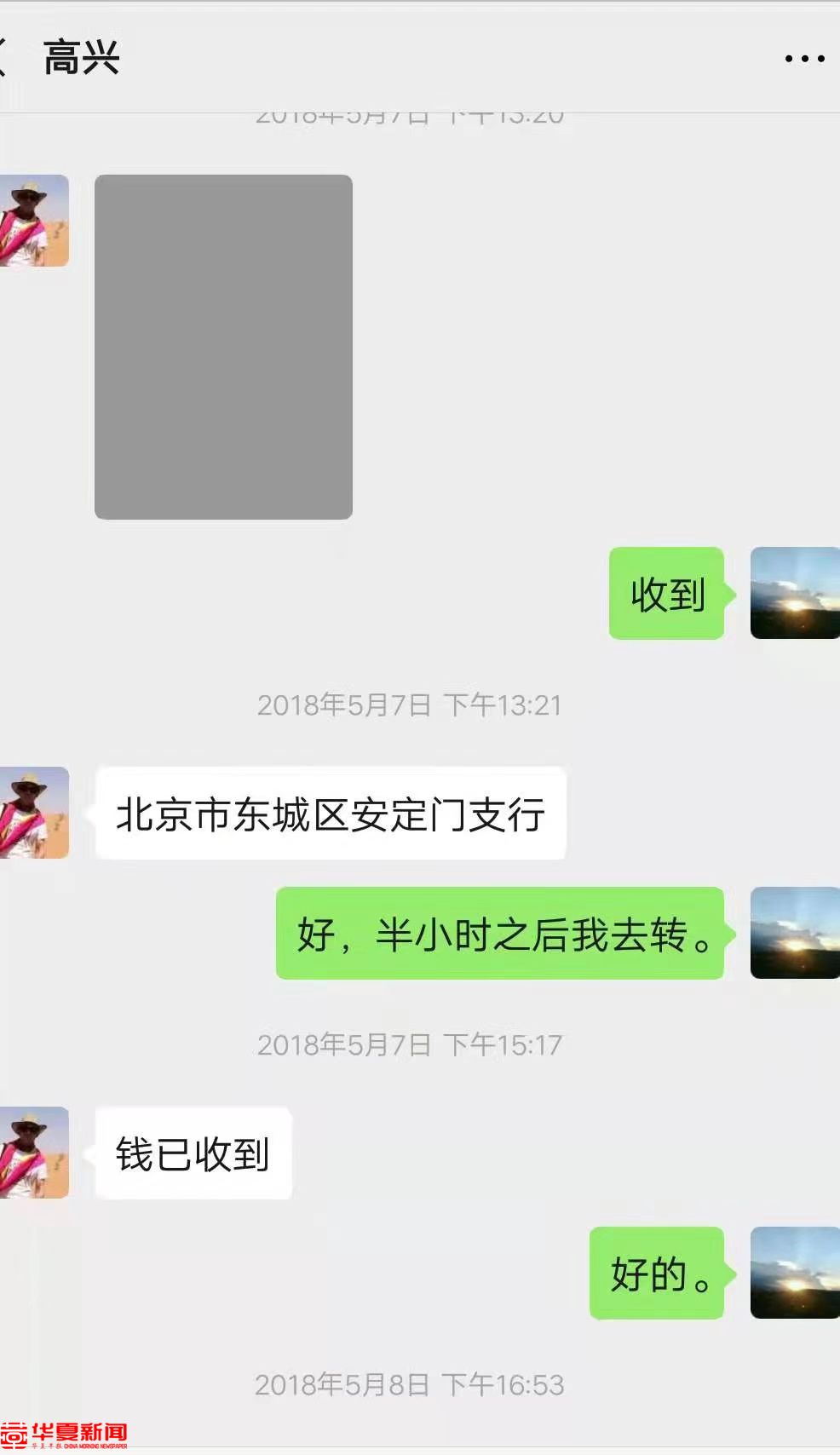 微信转款截图。