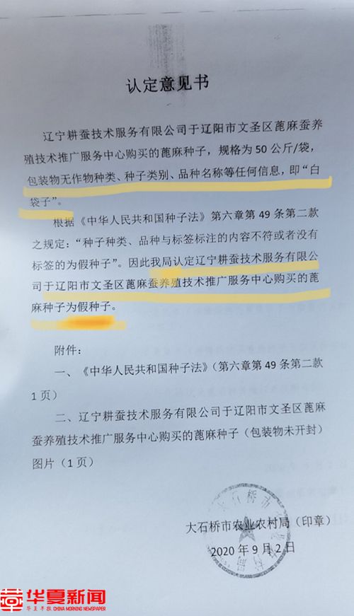 2020年8月5日,万冰代表公司向大石桥市农业农村局种子执法大队报案,后由农业农村局组织蓖麻行业专家进行鉴定,鉴定结果为该蓖麻种子为假种子。
