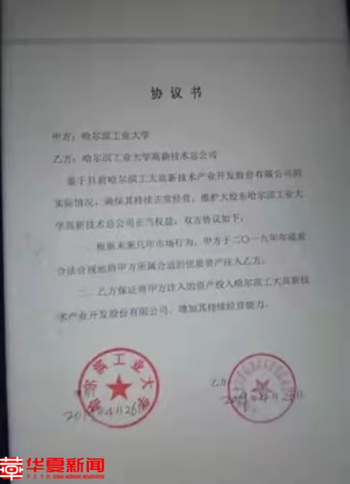 2019年4月26日,哈工大与工大高总签订的优质资产注入协议。