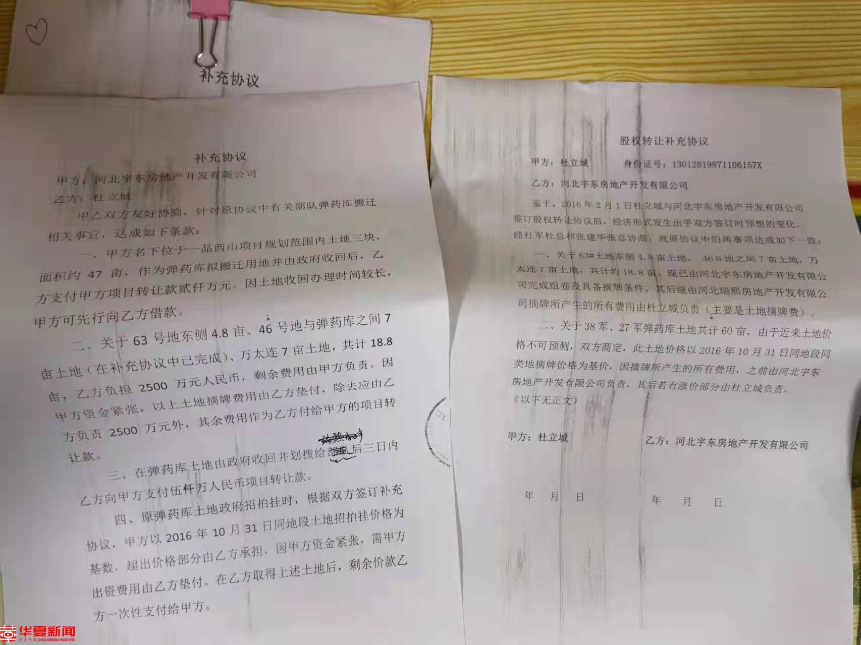 华夏早报讯(灯塔新闻首席记者 董大虎)河北省石家庄市鹿泉区一品西山项目转让过程中,被指涉嫌偷税近三亿元。近日,华夏早报-灯塔新闻接到石家庄读者反映称:河北宇东地产集团有限公司(下称宇东地产)实控人张建华与石家庄泰丰房地产开发有限公司(下称泰丰地产)实控人杜军,在转让一品西山别墅在建工程项目(约300亩)过程中,为规避税款,签订阴阳合同,偷逃税款近3亿元,该地块后由买受人泰丰地产操盘建成泰丰翠屏山水洋房项目,现均价10800元/平方米。