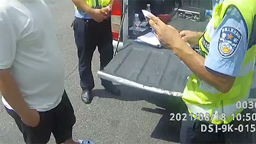 见状,执勤民警立即上前追赶并呼叫队员进行拦截,几分钟的追逐后,终于拦下货车司机。经核查信息得知,驾驶员杨某原来是因为无证驾驶、车辆超保超检。看到交警查车,因害怕被查便心存侥幸,弃车逃跑,连自己的鞋子都跑掉了,还是没跑过经常锻炼的执勤民警,逃脱法律的处罚。
