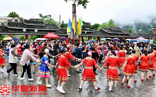 华夏早报湖南邵阳讯(特派记者 王祥刚)“阿妹站在寨门口,手捧一杯拦门酒,贵客你若进寨来,先喝一杯拦门酒……”巫水河畔舞翩跹,苗乡欢腾庆佳节。5月19日,为期三天的湖南省邵阳市绥宁县“四八姑娘节”在花园阁、大园古苗寨,寨市等地热闹举行。