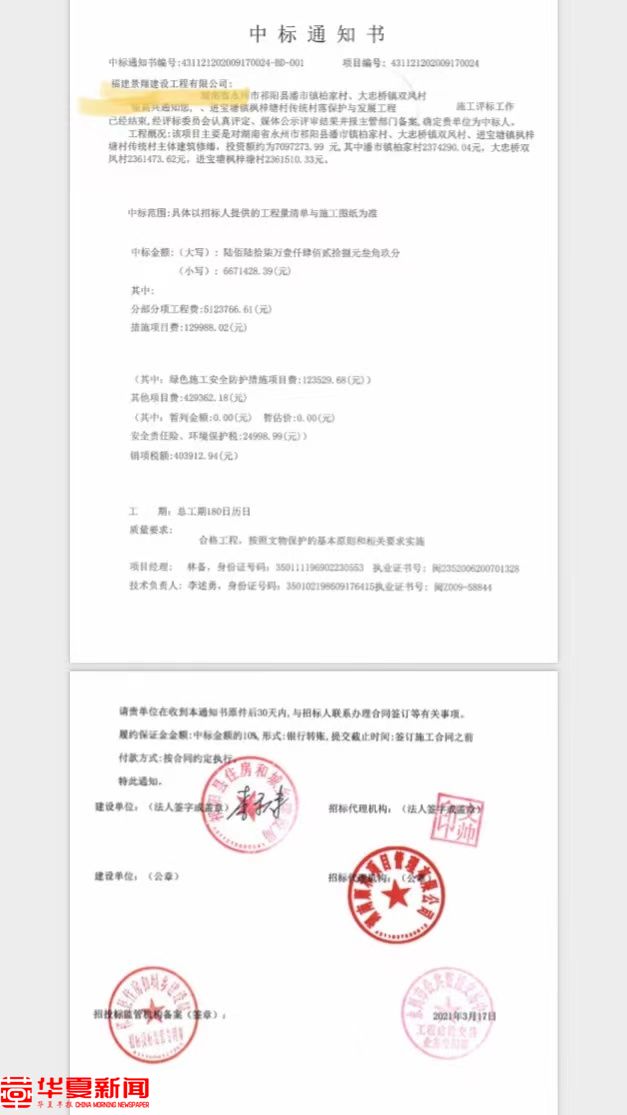 华夏早报讯(灯塔新闻记者 阳杨)项目成功中标,但中标书却被他人半路“骗走”,与发包方签了施工合同,自己俨然成了局外人?日前,湖南省祁阳市的唐宝财向有关部门实名举报祁阳市住建局副局长陈安美涉嫌受贿索贿,违规插手工程项目为自己谋利。祁阳市纪委相关部门回应称,已就举报人反映的问题进行调查核实并处理。