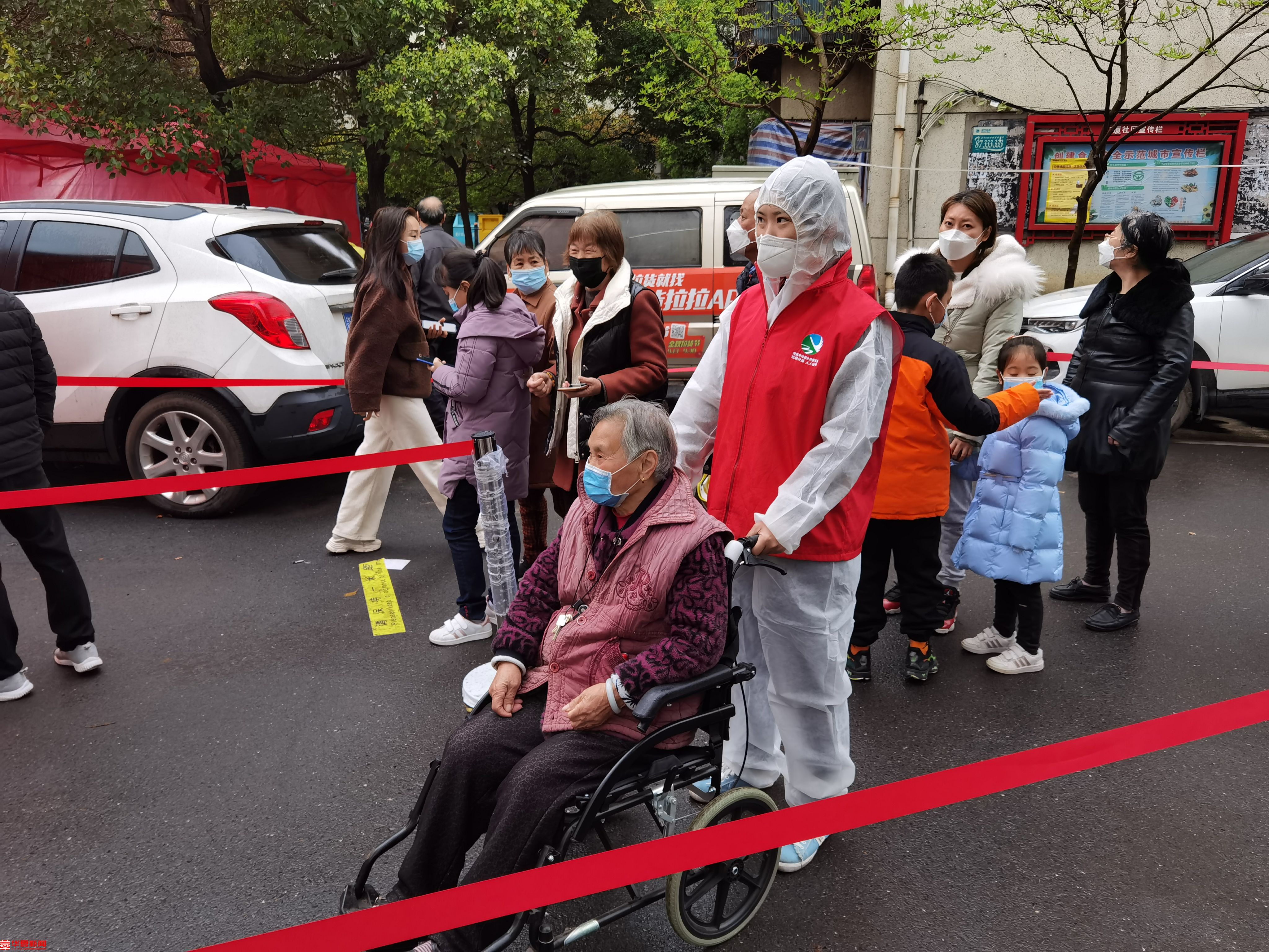 16栋4单元86岁独居老人魏老太要轮椅护送,接到工作安排,万芳推着轮椅把魏老太从家里接到核酸检测点进行核酸检测,魏老太的远在上海的儿女还特意打电话来表示感谢。万芳从早上8:00到晚上18:00整整十个小时坚守在核酸检测一线,家人对她的工作也给予了百分百的支持。