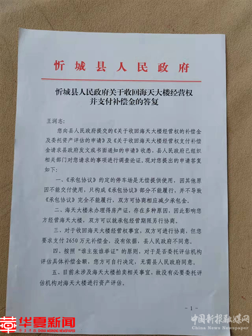 但王润志怎么也想不到,他疑掉进了忻城县政府人为设计的“合同变更”陷阱。签订《承包协议》后,先是县政府要求王润志将海天大楼停业,接着是人武部将大门封锁、控制,将大门强制永久性封堵,导致酒店无法经营,整栋楼被迫停业。