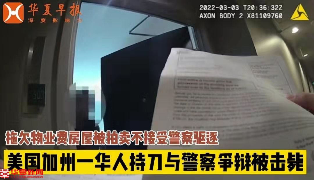 华夏早报讯(坐标新闻驻美国记者 黄浩)3月3日,美国加州一女性华人因拖欠物业费房屋被拍卖,警察上门下达驱逐令,该女子持刀与警察争辩,最后被击毙。