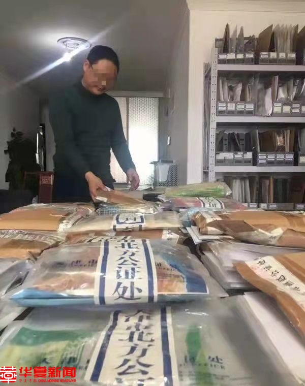 尚庆风在北京的办事处里堆满了案卷和资料。