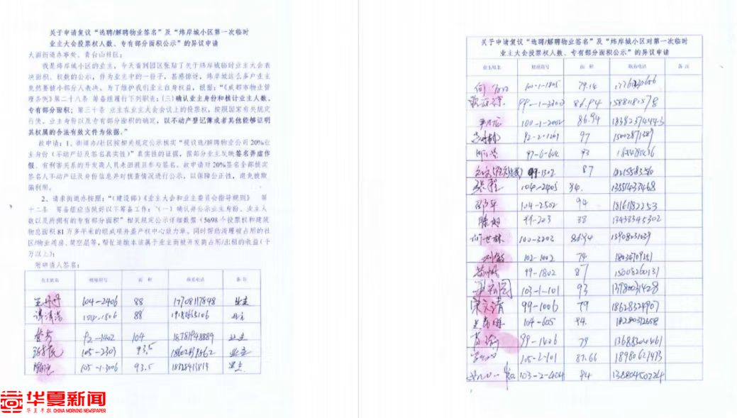 龙泉驿区住建局物业科相关负责人则称,关于炜岸城小区更换物业服务企业一事,不方便在电话里介绍相关情况。华夏早报-灯塔新闻将继续关注事件进展,发回最新报道。
