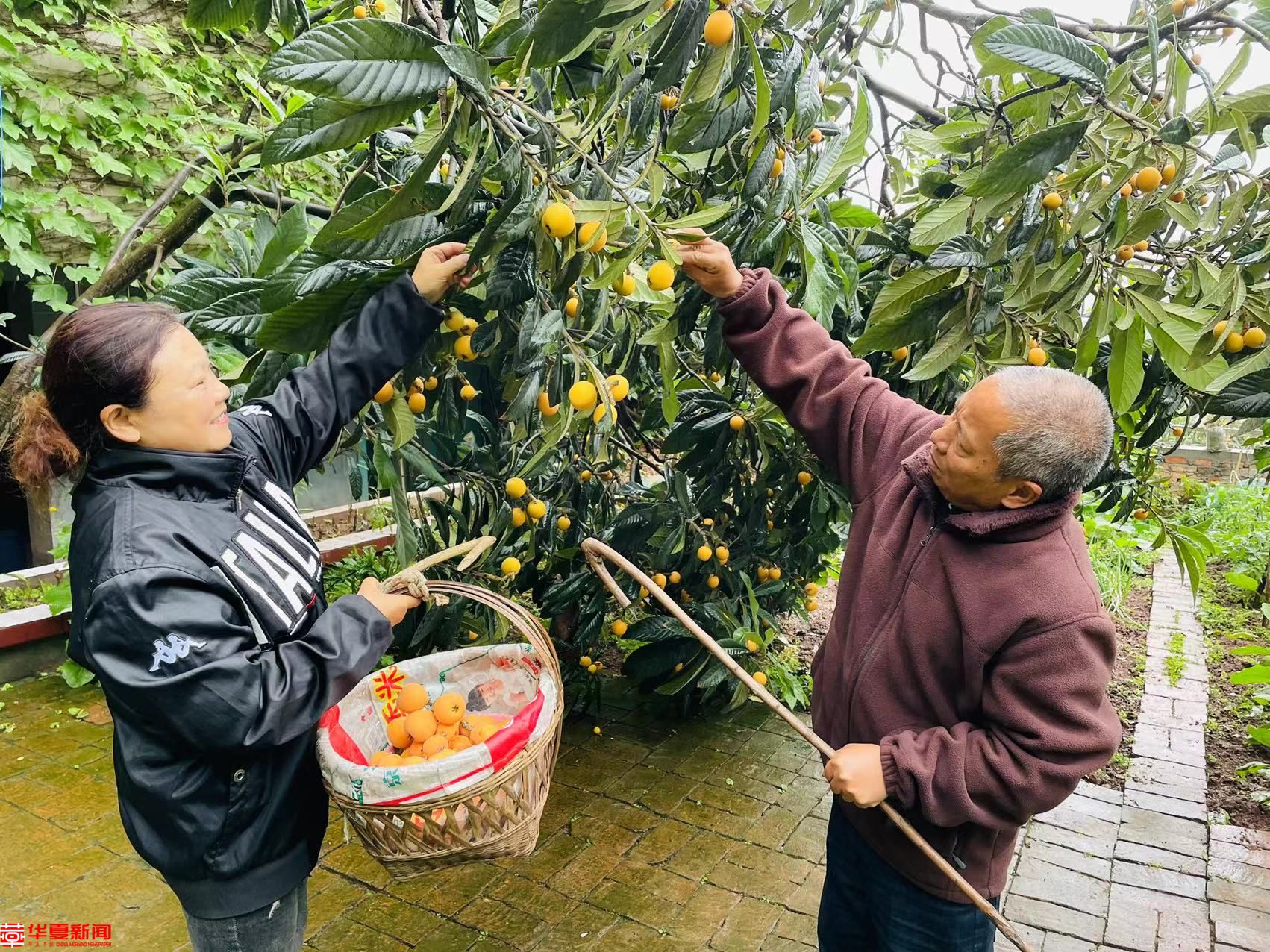 枇杷大王邹大明夫妇摘枇杷。 《华夏早报》记者 唐廷春 摄