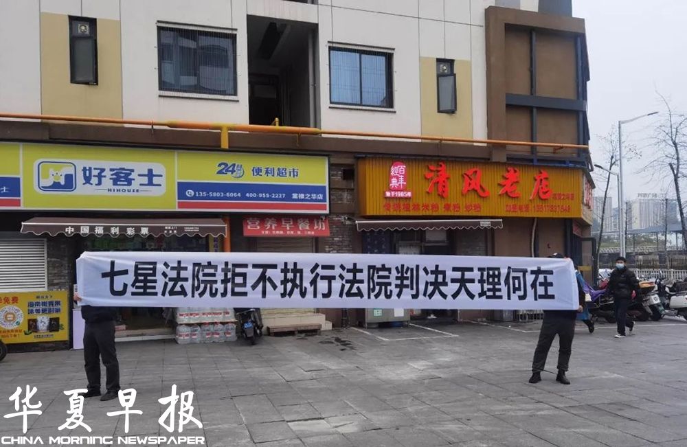 棠棣之华小区业主对七星法院拒不执行生效判决表示抗议。