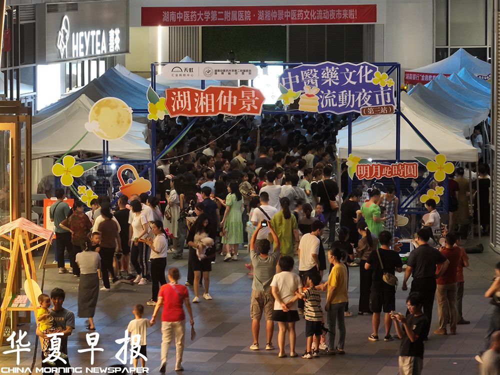 暑退九霄净,秋澄万景清。中秋佳节将至,9月14日晚,由湖南中医药大学第二附属医院(湖南省中医院)举办的湖湘仲景中医药文化流动夜市第三站在长沙市雨花区汇金天虹购物中心叠谷花园温馨启幕。