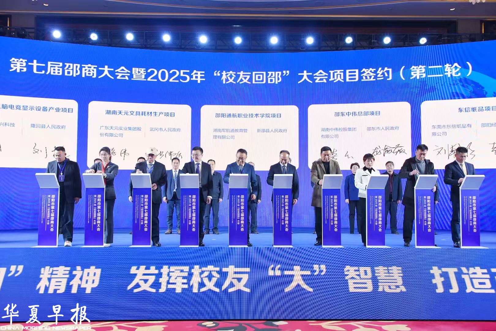 华夏早报讯(首席记者 陶越 见习记者 黎浩)1月7日至8日,第七届邵商大会暨2025年“校友回邵”大会在湖南邵阳举行,来自海内外的邵商精英和杰出校友,满怀浓浓故乡情、拳拳赤子心相聚一堂,共叙桑梓情谊、共商发展大计、共谋美好未来。市委书记严华,省委统战部副部长、省工商联党组书记胡建新出席并讲话。市人大常委会主任周迎春,市政协主席周文出席。