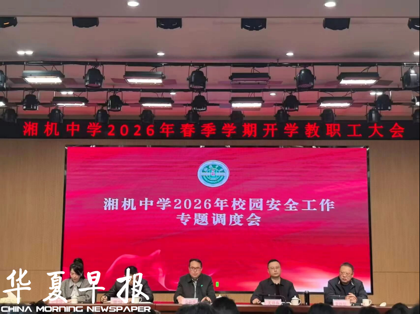 华夏早报讯(记者 陈步红 通讯员 曾更明)新学期伊始,湘潭市湘机中学将师生安全置于首位,紧紧围绕“先护好自己,才能护好学生、守好校园”的理念,全面启动2026年春季学期安全系列教育活动。通过召开安全工作会议、开展全员培训、组织应急演练、发放告家长书等形式,多措并举织密校园安全防护网,全力营造平安、和谐、文明的育人环境。